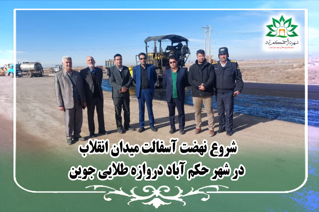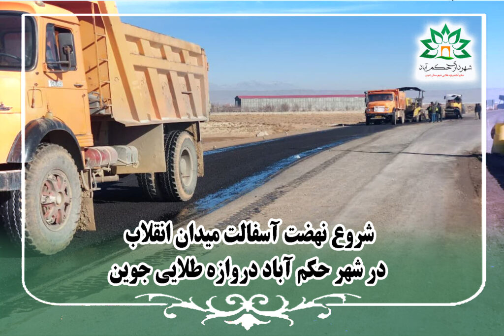 شروع نهضت آسفالت میدان انقلاب شهر حکم آباد دروازه طلایی جوین